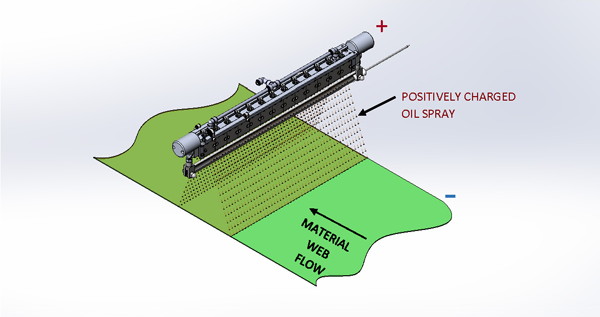 - The oil particles then adhere to the moving strip giving the uniform coating